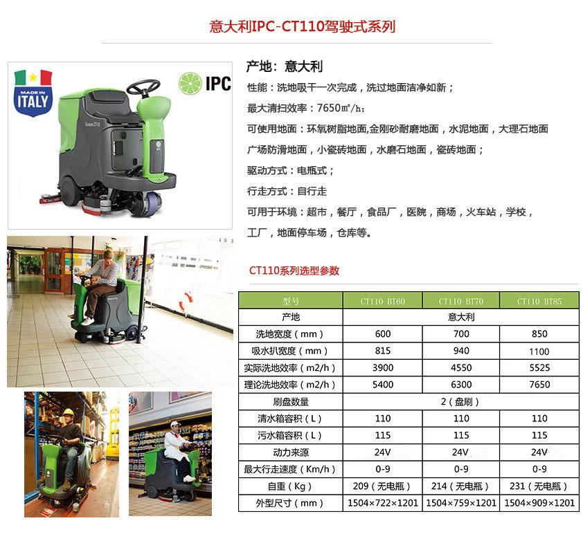 1.駕駛式洗地機(jī) CT110是集洗刷機(jī)、一體化地面清潔設(shè)備。能有效清潔地面頑油漬、污漬、輕度粉塵、臟水、土壤等。后面的弧形吸水扒可以有效吸收地面污水,洗衣機(jī)經(jīng)過(guò)的地面可以達(dá)到干燥的效果,清潔地面無(wú)殘留。